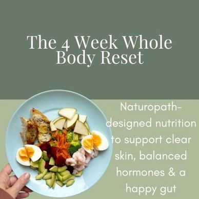 The 4-Week Whole Body Reset Meal Plan helps support your gut health, hormones and skin through anti-inflammatory, blood sugar–balancing meals.
